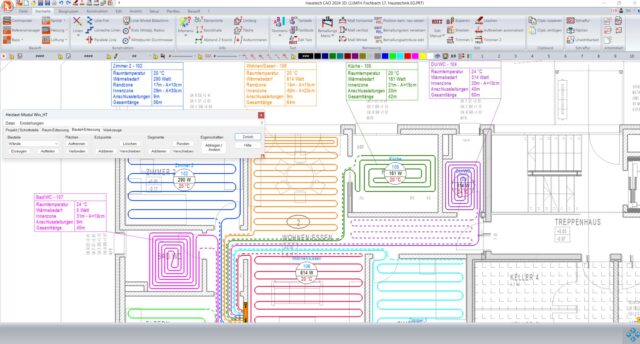 Mit dem Modul für Bodenheizungen legst du Heizkreise schnell und genau – auch in Räumen mit vielen Ecken. Abstände, Schleifen, Verlegearten: alles kannst du anpassen, und das System übernimmt die Berechnung für dich. Am Ende bekommst du eine fertige Materialliste für den Einkauf. Damit bist du schnell, präzise und wirtschaftlich unterwegs.